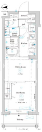 | 平米数 | 25.34m2 | 部屋詳細 | DK4帖/洋室4.3帖 |