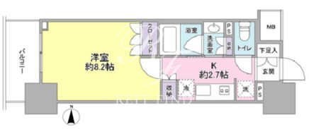 平米数 | 26.84m2 | 部屋詳細 | 洋室8.2帖/K2.7帖 |