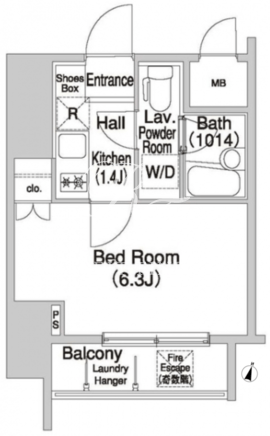平米数 | 20.00m2 | 部屋詳細 | 洋室6.3帖/K1.4帖 |