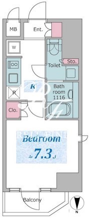 平米数 | 25.28m2 | 部屋詳細 | 洋室7.3帖/K2帖 |