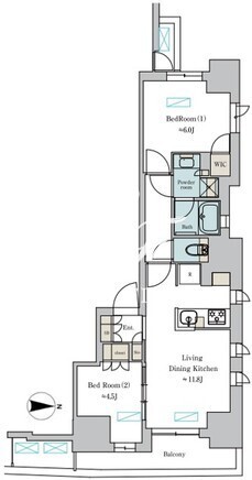 所在階/向き | 4階/東 | 間取り | 2LDK+WIC |