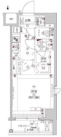 平米数 | 25.74m2 | 部屋詳細 | 洋室7.5帖/K2帖 |