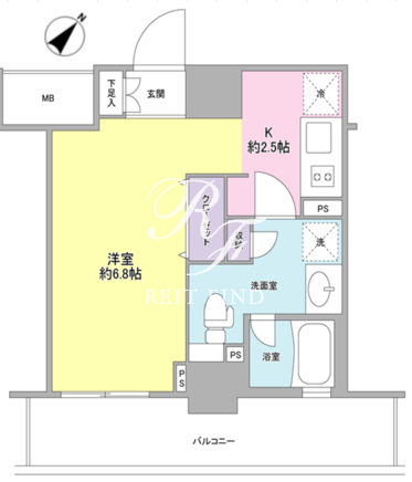 平米数 | 25.03m2 | 部屋詳細 | 洋室6.8帖/K2.5帖 |