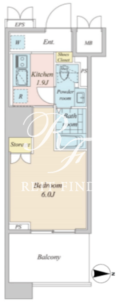 平米数 | 20.72m2 | 部屋詳細 | 洋室6帖/K1.9帖 |