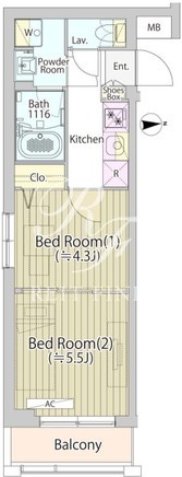 平米数 | 27.69m2 | 部屋詳細 | 洋室5.5帖/洋室4.3帖/K2帖 |