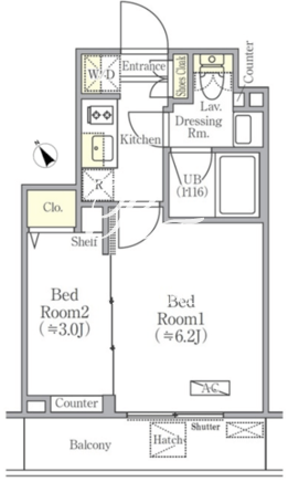 平米数 | 25.44m2 | 部屋詳細 | 洋室6.2帖/洋室3帖/K2帖 |