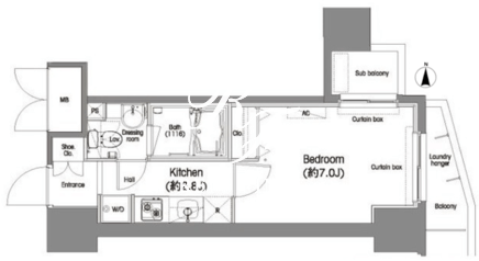 所在階/向き | 11階/東 | 間取り | 1K |
