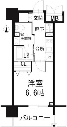 平米数 | 24.65m2 | 部屋詳細 | 洋室6.6帖/K2帖 |