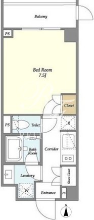 平米数 | 25.93m2 | 部屋詳細 | 洋室7.5帖/K2帖 |