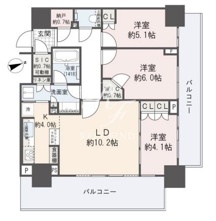所在階/向き | 15階/北 | 間取り | 3LDK+WIC+SIC |