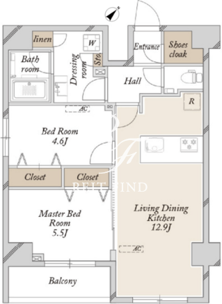 平米数 | 55.98m2 | 部屋詳細 | LDK12.9帖/洋室5.5帖/洋室4.6帖 |