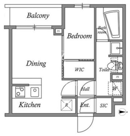 所在階/向き | 1階/西 | 間取り | 1DK+WIC+SIC |