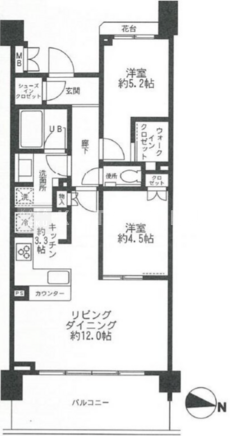 | 平米数 | 58.11m2 | 部屋詳細 | LDK15.3帖/洋室5.2帖/洋室4.5帖 |