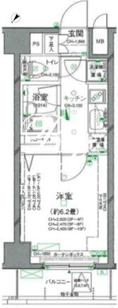 平米数 | 21.17m2 | 部屋詳細 | 洋室6.2帖/K2帖 |