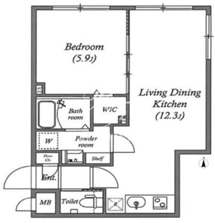 所在階/向き | 2階/北 | 間取り | 1LDK+WIC |