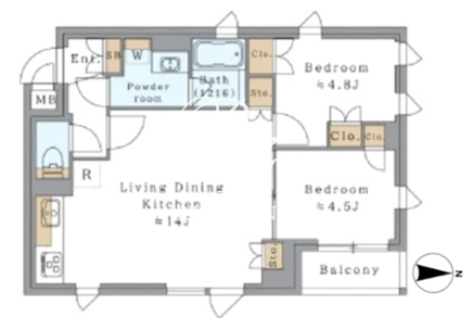平米数 | 52.96m2 | 部屋詳細 | LDK14帖/洋室4.8帖/洋室4.5帖 |