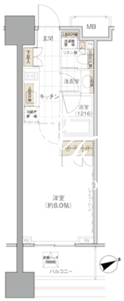 所在階/向き | 8階/南東 | 間取り | 1K |