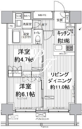 平米数 | 54.25m2 | 部屋詳細 | LDK13.6帖/洋室6.1帖/洋室4.7帖 |