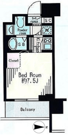平米数 | 18.00m2 | 部屋詳細 | 洋室7.5帖/K2帖 |
