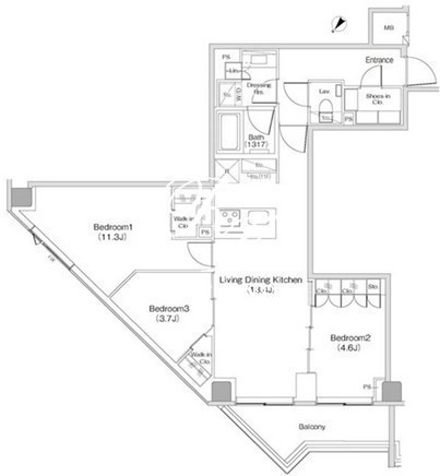 平米数 | 68.13m2 | 部屋詳細 | LDK13.4帖/洋室11.3帖/洋室4.6帖/洋室3.7帖 |