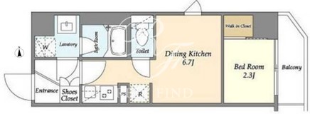 | 間取/面積 | 1DK+WIC/25.57m2 |