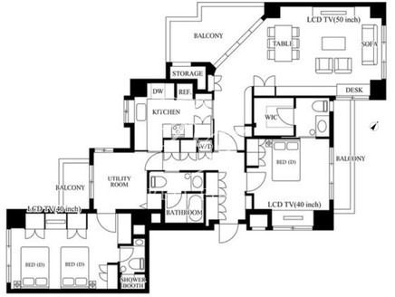 | 平米数 | 122.73m2 | 部屋詳細 | LDK20帖/洋室11.9帖/サービスルーム4.5帖 |