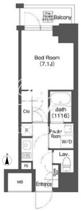 平米数 | 25.44m2 | 部屋詳細 | 洋室7.1帖/K2帖 |