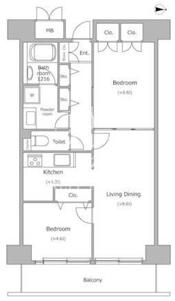 平米数 | 53.06m2 | 部屋詳細 | LDK11.2帖/洋室5.9帖/洋室4.6帖 |