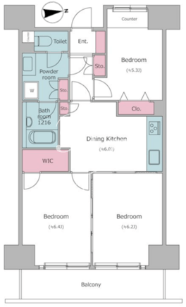 間取/面積 | 2LDK+WIC/52.37m2 |