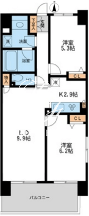 平米数 | 55.08m2 | 部屋詳細 | LDK11.9帖/洋室6.2帖/洋室5.3帖 |