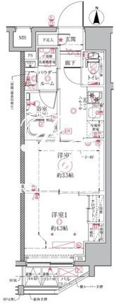 平米数 | 25.46m2 | 部屋詳細 | 洋室4.3帖/洋室3.5帖/K2帖 |