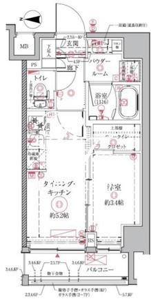 | 平米数 | 25.46m2 | 部屋詳細 | DK5.2帖/洋室3.4帖 |