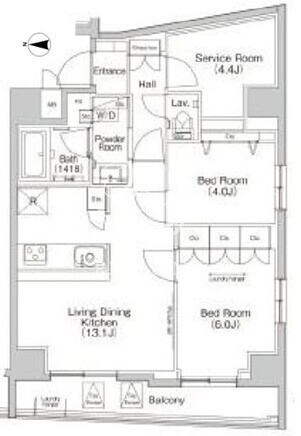 平米数 | 60.40m2 | 部屋詳細 | LDK13.1帖/洋室6帖/洋室4帖/サービスルーム4.4帖 |