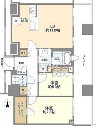 所在階/向き | 22階/東 | 間取り | 2LDK+WIC |