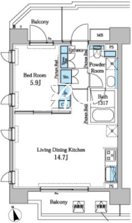 平米数 | 45.82m2 | 部屋詳細 | LDK14.7帖/洋室5.9帖 |