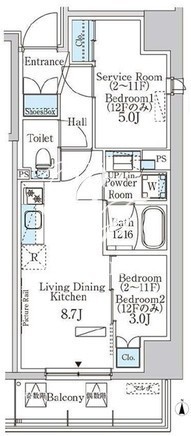 平米数 | 40.47m2 | 部屋詳細 | LDK8.7帖/洋室3帖/サービスルーム5帖 |