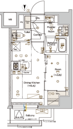 平米数 | 25.60m2 | 部屋詳細 | DK6.4帖/洋室2.6帖 |