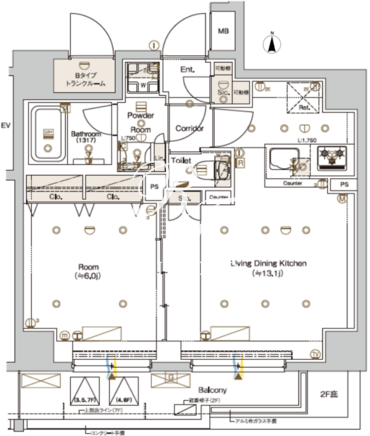 平米数 | 45.00m2 | 部屋詳細 | LDK13.1帖/洋室6帖 |