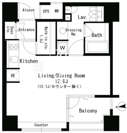 | 平米数 | 32.99m2 | 部屋詳細 | 洋室12.9帖 |