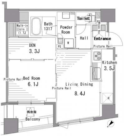 所在階/向き | 8階/北西 | 間取り | 1LDK+WIC |