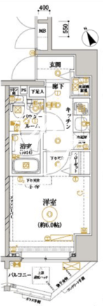 平米数 | 21.64m2 | 部屋詳細 | 洋室6帖/K2帖 |