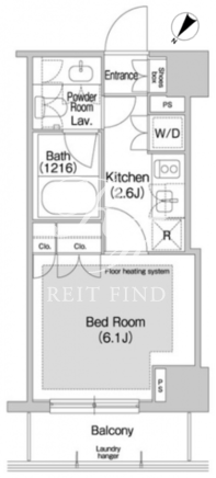 | 平米数 | 22.27m2 | 部屋詳細 | 洋室6.1帖/K2.6帖 |