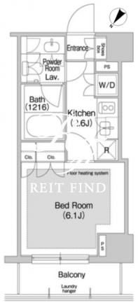 | 平米数 | 22.27m2 | 部屋詳細 | 洋室6.1帖/K2.6帖 |
