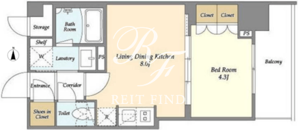 平米数 | 31.90m2 | 部屋詳細 | LDK8帖/洋室4.3帖 |