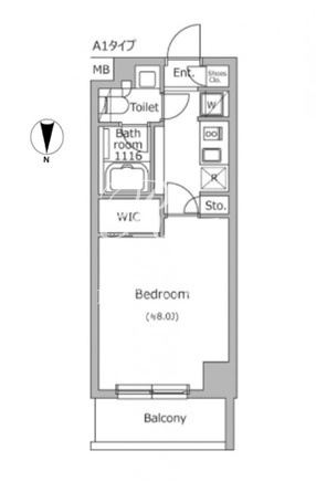 所在階/向き | 2階/北 | 間取り | 1K+WIC |