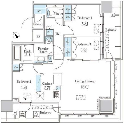 所在階/向き | 23階/北西 | 間取り | 3LDK+WIC |