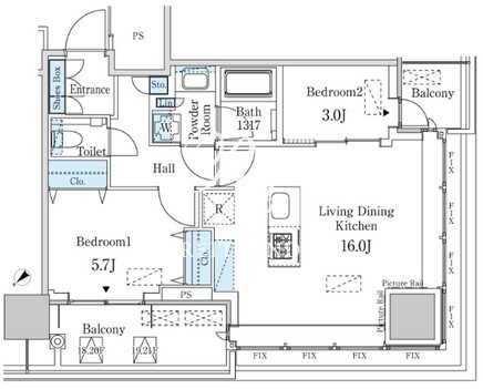 平米数 | 55.69m2 | 部屋詳細 | LDK16帖/洋室5.7帖/洋室3帖 |