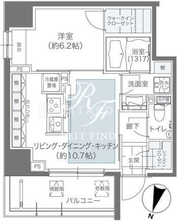 | 所在階/向き | 4階/北 | 間取り | 1LDK+WIC+SIC |