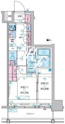 平米数 | 25.81m2 | 部屋詳細 | 洋室4.4帖/洋室2.6帖/K2帖 |
