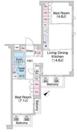 平米数 | 62.37m2 | 部屋詳細 | LDK14.6帖/洋室7.1帖/洋室4.6帖 |